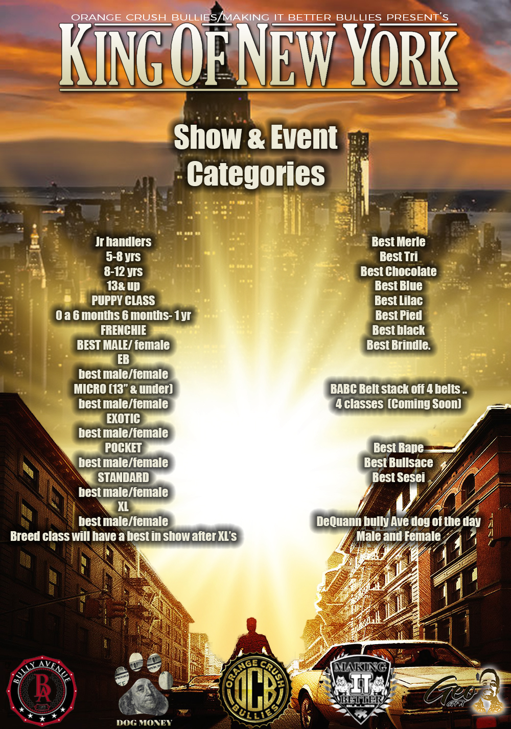 Are you ready for one of the baddest shows to hit New York!? Orange Crush Bullies & Making it Better Bullies presents THE KING OF NEW YORK! Do you have what it takes to win the title King of New York? Have any questions regarding the show please visit the links below and message the host, Joe or David directly.